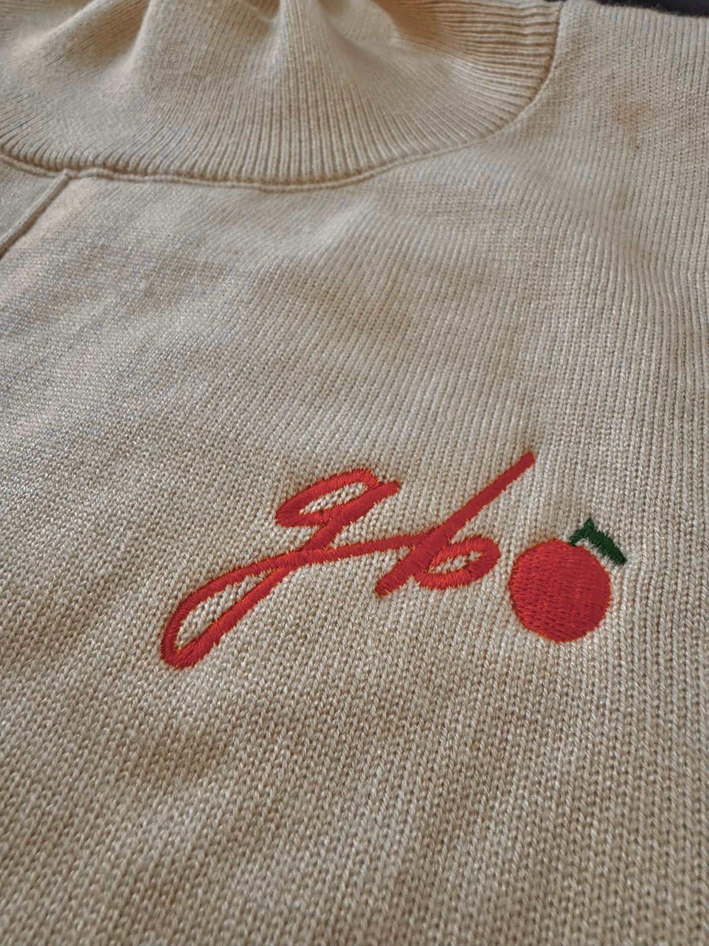 - Delicate orange "gbo" embroidery on the chest - subtle but statement-making